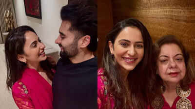 Rakul Preet Singh celebrated her first Kajari Teej on Monday with her mother-in-law. The ‘Indian 2’ actor shared a few moments from the celebration on social media. Dressed in a beautiful red salwar kameez, she posed alongside her husband, Jackky Bhagnani, and her mother-in-law.